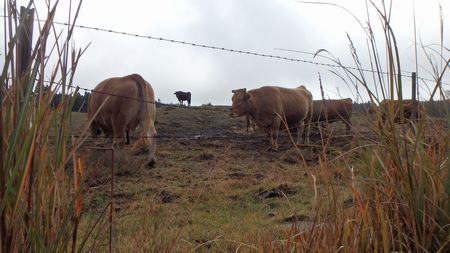 | ▼登山道入口へ下りてきました | ▼牛糞に注意しながら牧場を駐車場へ戻ります | |