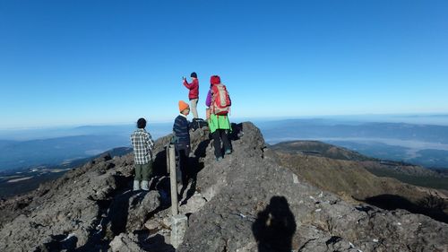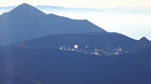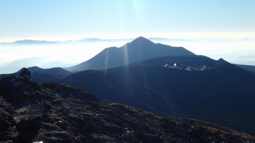 | ▼韓国岳山頂は360度の眺望が開けます | ▼韓国岳の火口底越しに北方の峰嶺を眺望 | |
