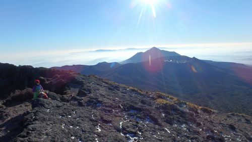 | ▼完全に上がりました・・・引き返して再度の日の出を見ます | ▼大浪避難小屋の方へ戻り2度目の日の出を待ちます | |