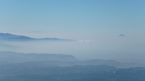 ▼高隈山系、白山の右後方に見える島影は・・・屋久島? (右方の独立峰は、開聞岳) |