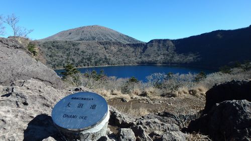| ▼韓国岳山頂より、霧島の高千穂峰を望む | ▼韓国岳山頂より歩いてきた大浪池を望む | |
