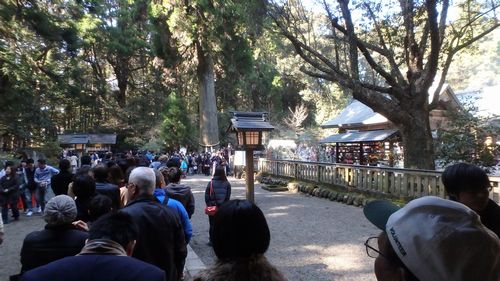 | ▼初詣は高原町の狭野神社です 神社近くの駐車場は満車だったので国道近くから長い参道を歩きます |