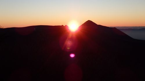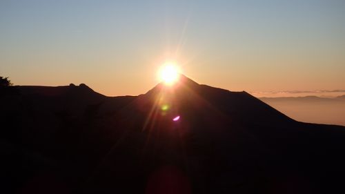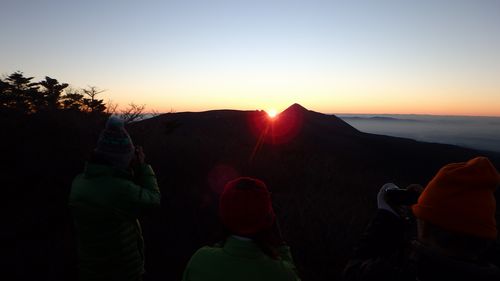 | ▼初日は高千穂峰に隠れています | ▼霧島の高千穂峰山頂部より初日が上がります。 | |