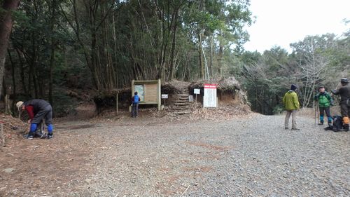 | ▼夷守台駐車場から登山口まで林道を歩きます | ▼車でも上がれますが、足慣らしで林道を歩いて登山口へ到着 | |