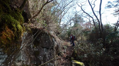 | ▼ツララを眺めながら登山道を歩きます | ▼丸岡山-夷守岳分岐を右に見て大幡山へ向います | |