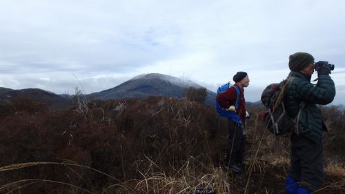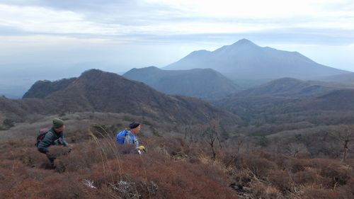 | ▼展望所より大幡池-丸岡山-夷守岳 | ▼展望所から眺望を楽しむメンバーです | |