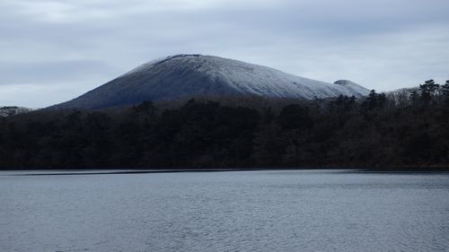 | ▼小さなツララの下がる、膳棚 | ▼大幡池湖畔より冠雪・樹氷の韓国岳 | |