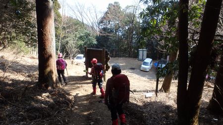 | ▼滑り易い巨石脇を慎重に下山します | ▼始発の椎葉登山口へ到着しました。 | |