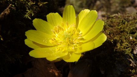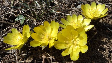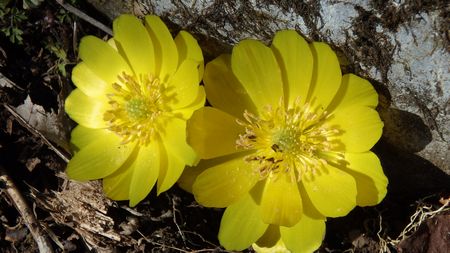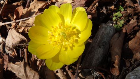 | 仰烏帽子山(熊本県相良村)に咲く早春の福寿草(2/11) | ||
