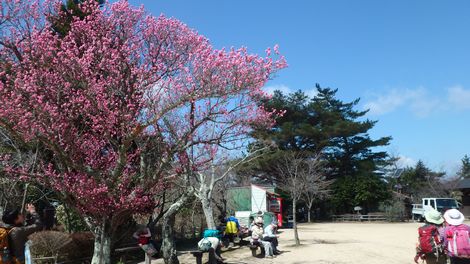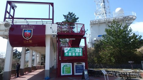 | ▼掬星台の桜?は満開です♪ | ▼掬星台までロープウェイが上がってきています(星の駅) | |