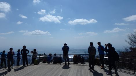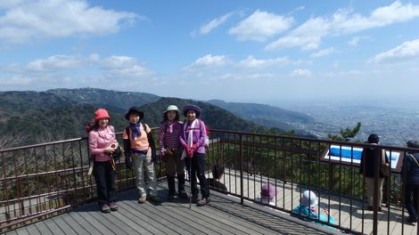 ▼昼食休憩後、大阪方面を背景に集合写真です | |