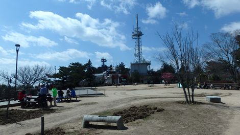 | ▼電波塔の建つ摩耶山山頂部(掬星台)は広々公園です | ▼摩耶山へようこそ(掬星台) | |