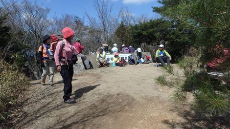 | ▼摩耶別山へ向う途中で『摩耶の石舞台』へ寄ります。 | ▼摩耶の石舞台で休憩する登山者 | |