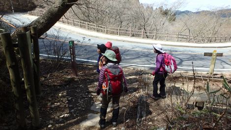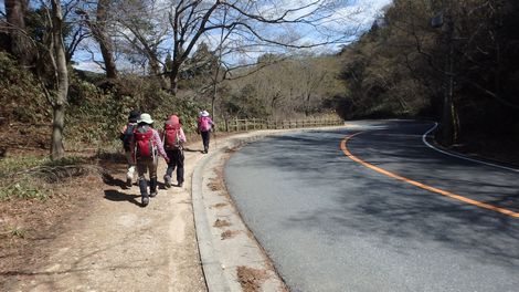 | ▼車道へ出ました・・・アゴニー坂を下ります | ▼車道(アゴニー坂)を杣谷峠方面へ下ります | |