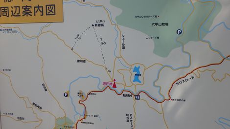 | ▼車道途中から左折して穂高湖方面へ下ります | ▼徳川道で新穂高(648m)へ向います ※4差路から、2〜3分で新穂高の上部登山口(笹の中に踏み跡有) ※4差路から、20分程下り小さな沢を越える地点が下部登山口 |