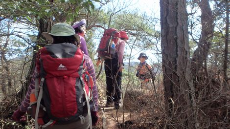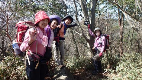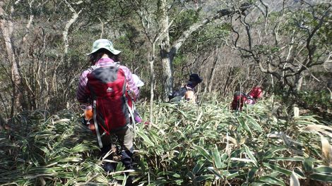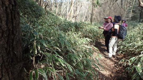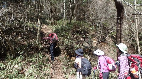 | ▼新穂高(648m)山頂に到着しました | ▼新穂高から笹道を下り上部登山口へ下ります | |