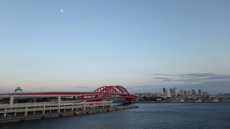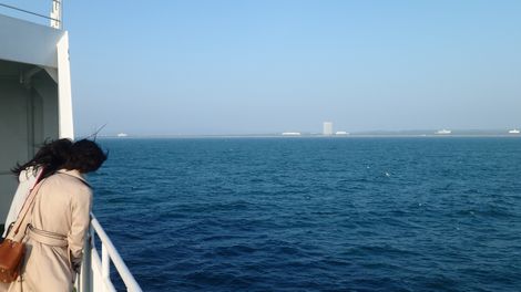 | ▼神戸港フェリー乗り場へ到着しました | ▼フェリー乗り場より望むポートアイランド | |