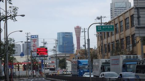 | ▼ポートタワーを左方に見ながら新神戸駅方面へ徒歩で向います | ▼神戸市役所前のフラワーロードを歩きます | |