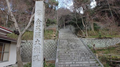 | ▼雷声寺の石段を上がります。 | ▼雷声寺を上がると金比羅大権現の標柱を見て終点まで石段を上がります。 | |