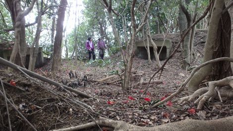 | ▼石段の終点ヶ所から旧摩耶道(登山道)へ入ります | ▼東山の砲台跡へ寄ります(学校林道) | |
