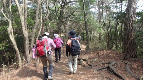 | ▼摩耶の石舞台から望む摩耶山の掬星台 | ▼摩耶別山目指して全山縦走路を歩きます | |