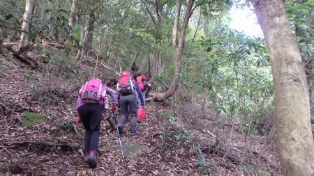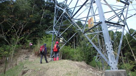 | ▼いきなりの急坂を登ります | ▼鉄塔ヶ所から鰐塚山の山頂が見えます | |