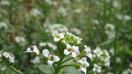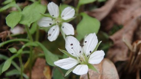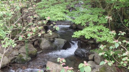 | ▼山頂部に咲いていました・・・小さな白い花はワチガイソウ? | ▼ワニツカ渓谷に咲く、クレソンの花です | |