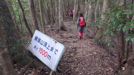 | ▼山頂まであと「1500m」です・・・ガンバ! | ▼登山道脇にギンリョウソウが生えています | |