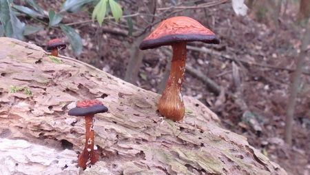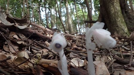 | ▼鉄塔ヶ所は開けるので休憩に良い場所です。 | ▼おもしろい形のキノコです♪ | |