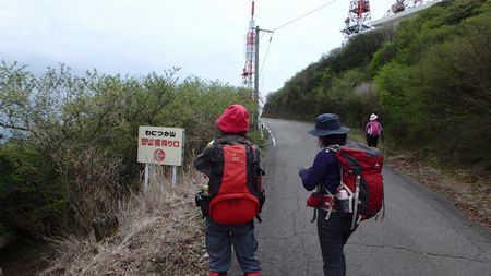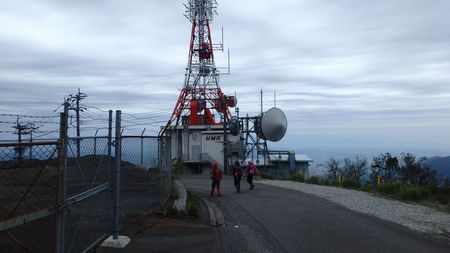 | ▼山頂まであと500mです | ▼車道へ出ました・・・山頂部の放送用鉄塔が見えます。 | |