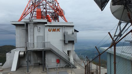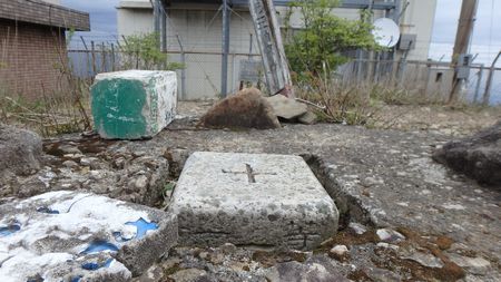 | ▼宮崎の民放局、『UMK』のTV放送塔 | ▼鰐塚山山頂部の三角点(標高:1181.1m) | |