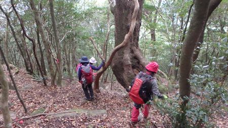 | ▼時間が早いので下山してから昼食にします | ▼巨樹を見ながら下山します | |