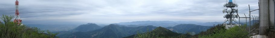 | 鰐塚山山頂から東方に広がるパノラマ画像です〜♪ 左方に尾鈴山そして宮崎平野から正面に徳蘇山系の峰嶺が見えます |