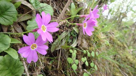| ▼鰐塚山のイワザクラは、ちょうど見頃です♪ | ▼鰐塚山のイワザクラを堪能しました♪ | |