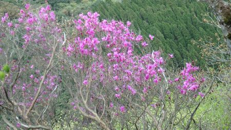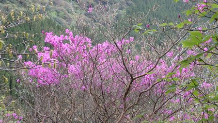 | ▼山頂部のツツジは3〜5分咲き状態 | ▼山頂部にツツジの群生ヶ所が有ります〜♪ | |