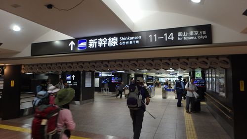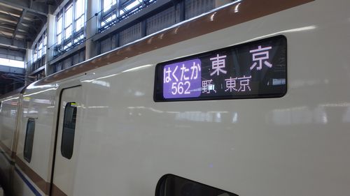 | ▼金沢駅で北陸新幹線へ乗り換えます | ▼東京行きの新幹線「はくたか562」に乗車します | |