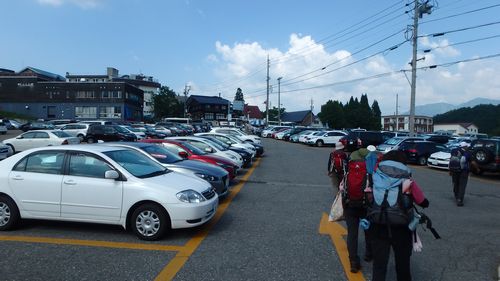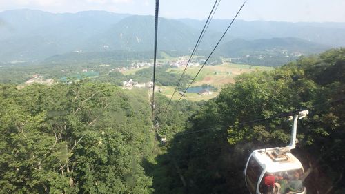 | ▼荷物が有るので3名ずつに分かれて乗ります | ▼一気に高度を上げると眼下に栂池高原が見えてきました | |