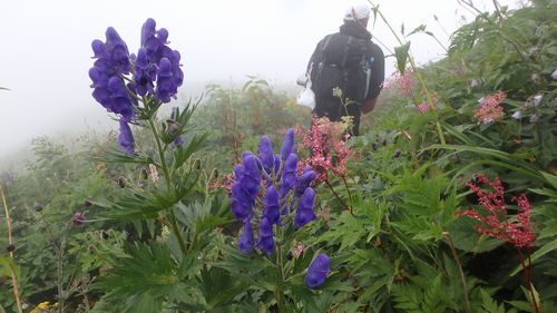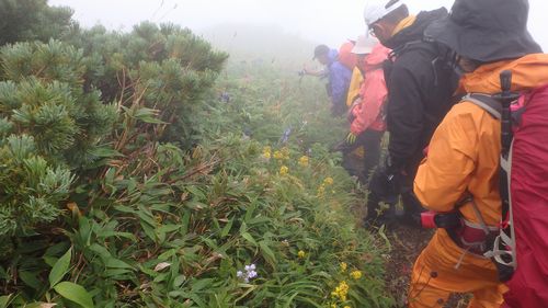 | ▼清水尾根の花畑を下ります | ▼清水尾根の花畑を下ります・・・トリカブトの花 | |