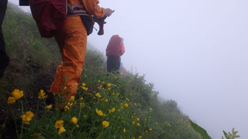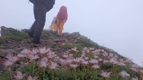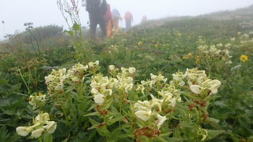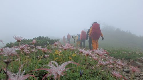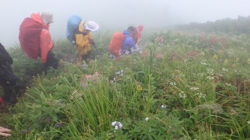 | ▼花々を愛でながら通過します | ▼珍しい花々に立ち止まって写真撮影です | |