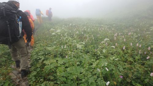 | ▼眺望の良さそうな稜線歩きですが周囲は真っ白です | ▼花々の多い祖母谷ルートです | |