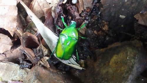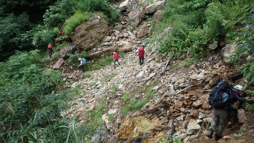 | ▼沢箇所の多くは登山道が崩壊しています・・・要注意! | ▼緑色の黄金虫??でしょうか!(登山道にて) | |
