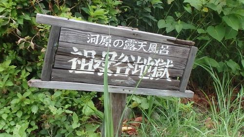 | ▼河原に温泉の涌く、祖母谷へ下りてきました。 時間があれば河原で湯温を調節して浸かりたかったです。 |