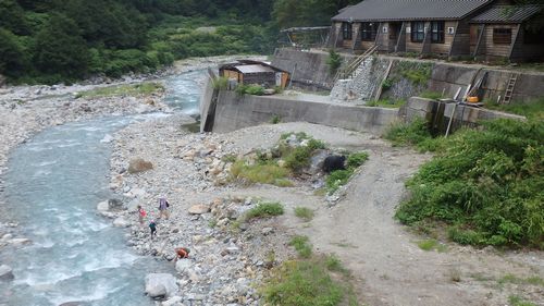 ▼祖母谷の温泉施設を眺めながら、欅平へ向います。 | |