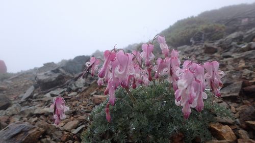 | ▼正面にピークが見えます | ▼マツムシ草の群生地で小休止・・・一帯でコマクサも見られます | |