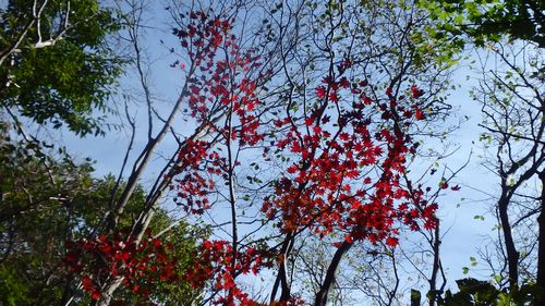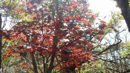 | ▼高度を上げて自然林帯へ入ってきました。 | ▼モミジが色づいています♪ | |