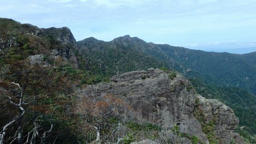 | ▼縦走路より望む、祖母山と天狗岩 | ▼縦走路より望む、傾山 | |