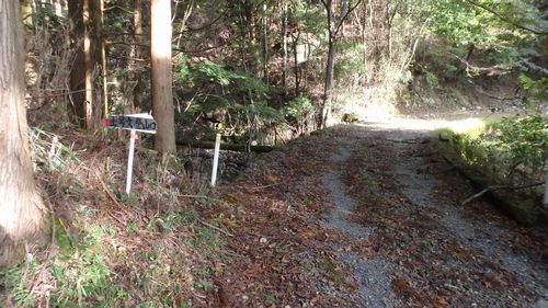 | ▼土呂久林道入口(四季見原方面より望む) 右方の土呂久・黒葛原方面から道元越林道を上がってきました。 |