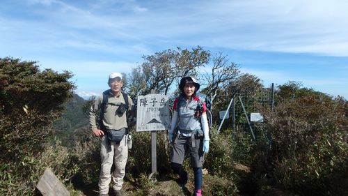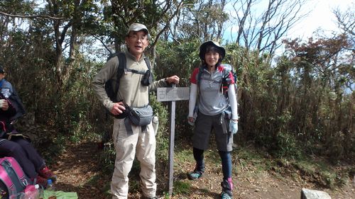 | ▼古祖母山目指して縦走路を歩きます。 | ▼障子岳から1時間足らずで古祖母山へ到着しました。 ファミリー登山者の方にシャッターを押して頂きました(感謝!) |