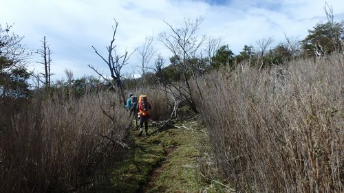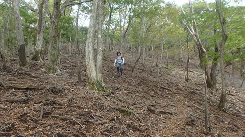 | ▼きれいに色づいたモミジを見ました。 | ▼祖母山〜傾山の縦走路を目指して登ります。 | |
