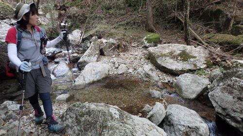 | ▼小さな沢を幾つか渡ります・・・雨天時は注意! | ▼休憩に最適な沢を通過します。 | |